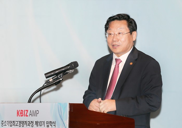 | △ 중소기업 최고경영자 과정 입학식 참석, 강연하는 주형환 장관 |