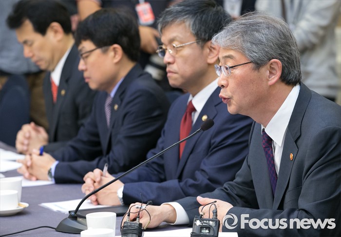 (서울=포커스뉴스) 24일 오전 서울 여의도 국회 귀빈식당에서 열린 조선·해운업 구조조정 관련 당정협의에 참석한 임종룡 금융위원장이 모두발언을 하고 있다.