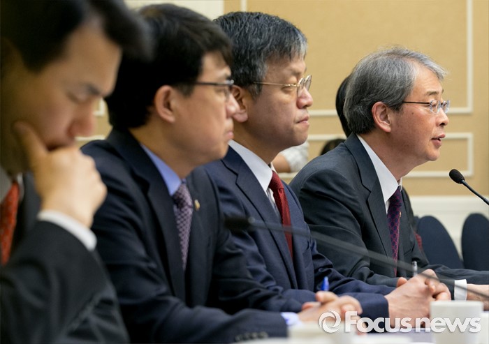 (서울=포커스뉴스) 24일 오전 서울 여의도 국회 귀빈식당에서 열린 조선·해운업 구조조정 관련 당정협의에 참석한 임종룡(오른쪽 첫번째) 금융위원장이 모두발언을 하고 있다.
