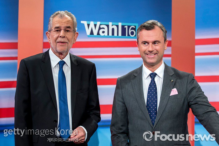 당선이 확정된 뒤 판데어벨렌 후보는 "과거를 디딤돌로 삼아 서로 다름을 인정하고 존중해야 한다"고 전했다.23일(현지시간) 치러진 오스트리아 대선 결선 투표에서 알렉산데 판데어벨렌 무소속 후보(왼쪽)가 극우 성향의 노르베르트 호퍼 자유당 후보를 꺾고 당선됐다. 판데어벨렌 후보는 1997년부터 2008년까지 녹색당 대표를 지냈다. (Photo by Jan Hetfleisch/Getty Images)2016.05.24 ⓒ게티이미지/이매진스