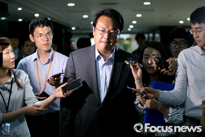 (서울=포커스뉴스) 정진석 새누리당 원내대표가 24일 오전 서울 여의도 국회에서 취재진 질문을 받으며 원내대표실로 이동하고 있다. 이날 새누리당은 오전에 예정됐던 원내대책회의 일정을 취소했다.