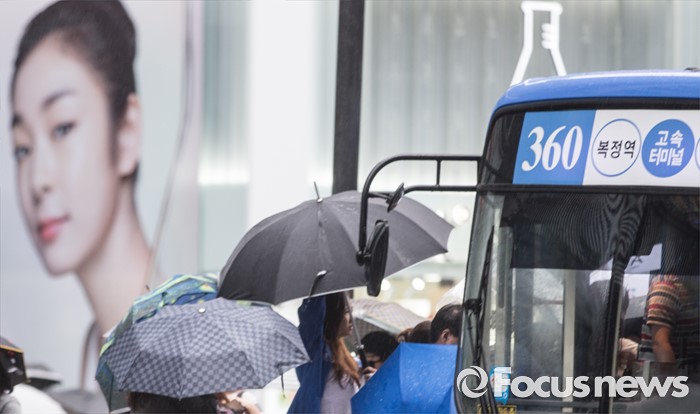 (서울=포커스뉴스) 전국이 흐리고 비가 내리는 24일 오전 서울 강남구 강남역 인근에서 시민들이 발걸음을 재촉하고 있다.