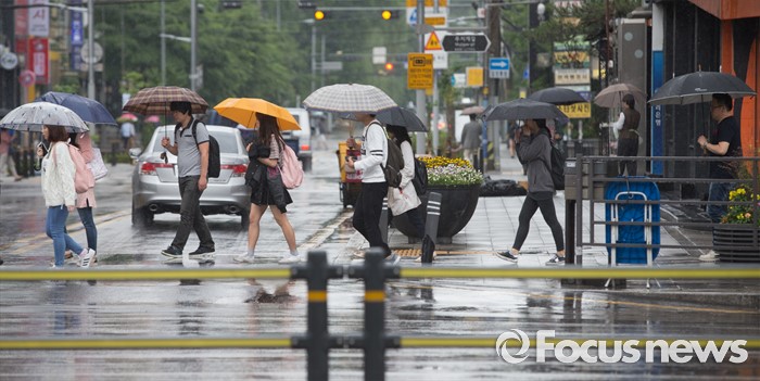 (서울=포커스뉴스) 전국이 흐리고 비가 내리는 24일 오전 서울 강남구 강남역 인근에서 시민들이 발걸음을 재촉하고 있다.