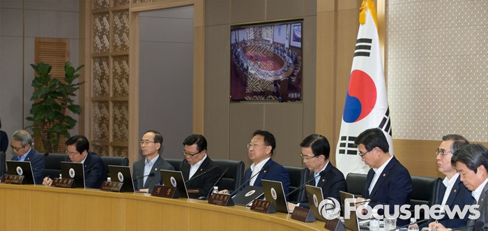 (세종=포커스뉴스) 유일호(오른쪽 다섯 번째) 경제부총리 겸 기획재정부장관이 24일 오전 세종시 정부세종청사 국무회의장에서 서울-세종 영상회의로 열린 국무회의를 주재하고 있다.