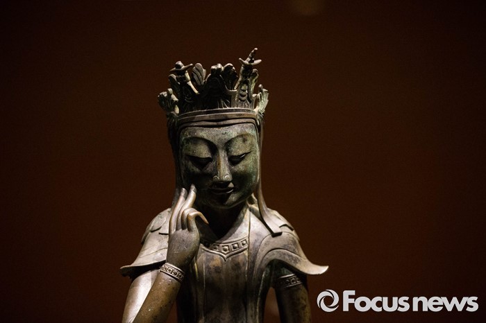 (서울=포커스뉴스) 24일 오전 서울 용산구 국립중앙박물관 기획전시실에서 열리고 있는 '한일국보 반가사유상의 만남' 전시에 우리나라 국보 제78호 금동반가사유상이 전시돼있다.