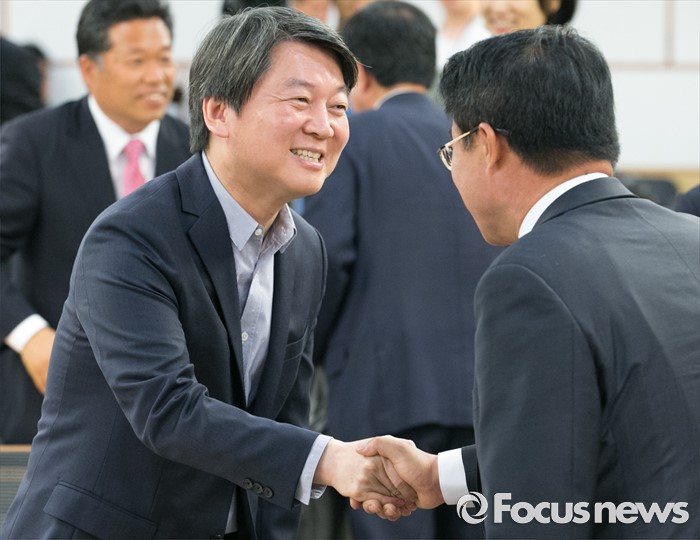 (서울=포커스뉴스) 24일 오전 서울 여의도 국회 의원회관에서 열린 국민의당 6차 정책역량강화 워크숍에 참석한 안철수(왼쪽) 상임공동대표가 당선인들과 인사하고 있다.