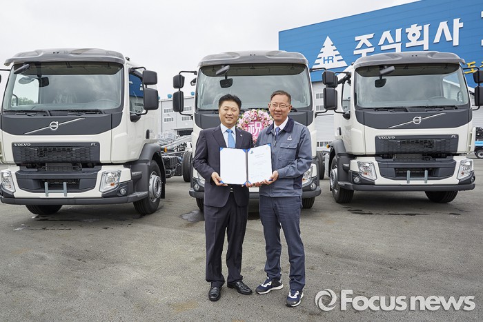 (서울=포커스뉴스) 볼보트럭코리아가 지난 13일 전북 김제 ㈜호룡 본사에서 FL 트럭을 전달하는 기념식을 가졌다.