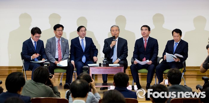 (서울=포커스뉴스) 김종인(왼쪽 세 번째) 더불어민주당 비상대책위 대표가 24일 오전 서울 여의도 국회의원회관에서 열린 '더불어민주당, 지자체장 초청 일자리 정책 콘서트'에 참석헤 발언 하고 있다.