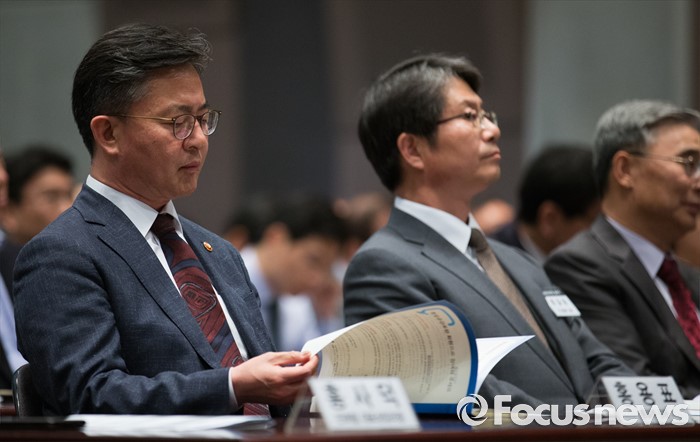 (서울=포커스뉴스) 천안함 피격사건을 계기로 5·24 대북제재 조치가 취해진 지 6년이 되는 날인 24일 오후 서울 중구 프레스센터에서 열린 '통일공감포럼 발족식 및 통일공감대화'에 참석한 홍용표 통일부 장관이 포럼 자료를 살펴보고 있다.