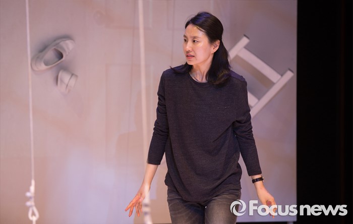 (서울=포커스뉴스) 24일 오후 서울 종로구 CJ아지트 대학로점에서 열린 연극 '크레센도 궁전' 프레스콜에 참여한 배우 김소진이 주요장면을 시연하고 있다.