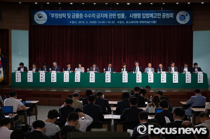 국민권익위원회는 24일 오후 서울 중구 포스트타워 대회의실에서 '청탁금지법' 시행령 입법예고안 공청회를 열었다.