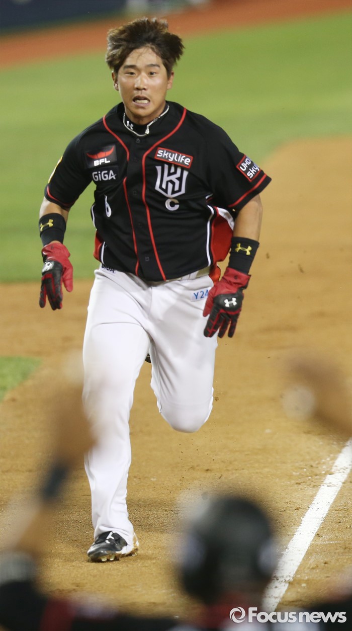 (서울=포커스뉴스) 24일 서울 잠실구장에서 열린 2016프로야구 kt-두산 경기 6회초 1사 1,3루에서 kt 전민수의 안타와 두산의 송구 에러로 1루주자 박경수가 홈인하고 있다.