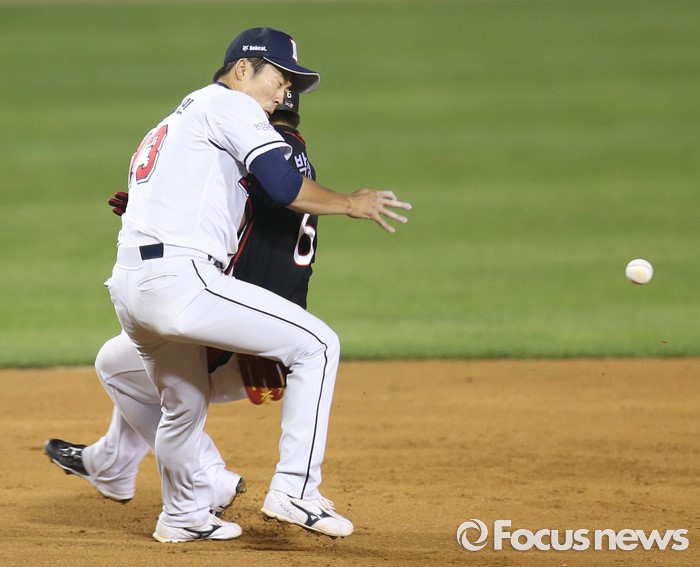 | △ 충돌하는 박경수와 허경민 |