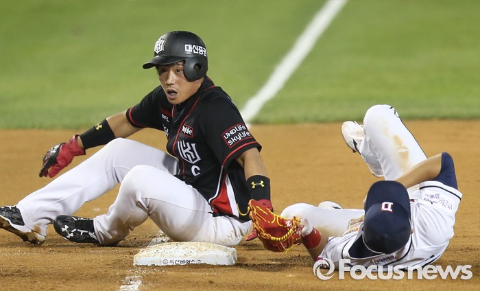 충돌해 쓰러진 허경민과 박경수