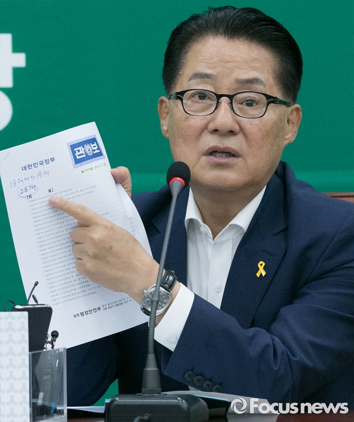 | △ 관보 들고 발언하는 박지원 |