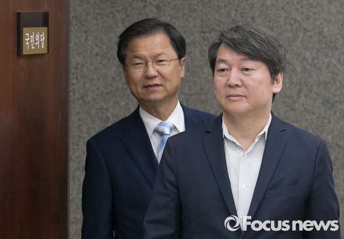 (서울=포커스뉴스) 25일 오전 서울 여의도 국회에서 열린 국민의당 최고위원회의에 안철수(오른쪽) 상임공동대표와 천정배 공동대표가 참석하고 있다.