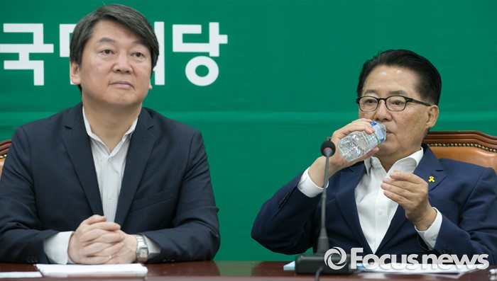 (서울=포커스뉴스) 25일 오전 서울 여의도 국회에서 열린 국민의당 최고위원회의에 참석한 박지원 원내대표가 물을 마시고 있다. 왼쪽은 안철수 상임공동대표.
