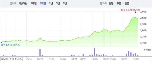 지카바이러스가 전 세계적으로 문제가 되던 2월 거침없이 올랐던 주가는 현재 상승 탄력이 둔화된 상황이다. 지카바이러스 환자가 나와도 완치가 되는 상황 속에서 테마주의 인기가 떨어지고 있다.