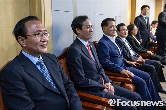 (서울=포커스뉴스) 25일 오전 서울 여의도 국회의원회관에서 열린 '공영언론 지배구조 개선 위한 20대 국회의 역할과 과제 토론회'에 야3당 원내대표가 참석 하고 있다. 왼쪽부터 노회찬 정의당 원내대표, 우상호 더불어민주당 원내대표, 박지원 국민의당 원내대표.