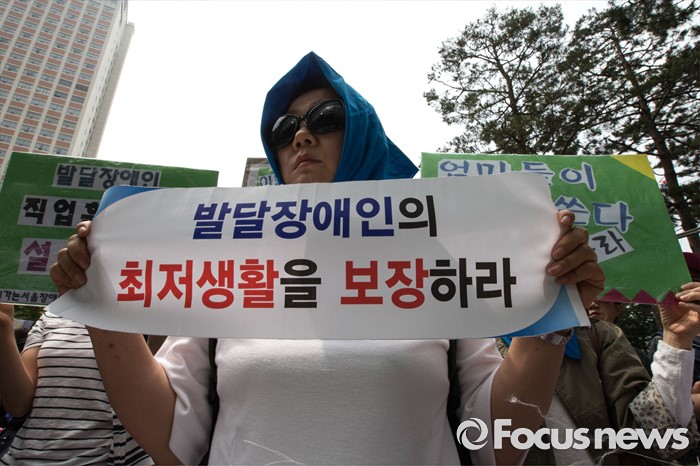 (서울=포커스뉴스) 25일 오전 서울 중구 서울시청 앞에서 서울시 장애인 부모회 회원들이 발달장애인 종합대책요구에 대한 기자회견이 열렸다.