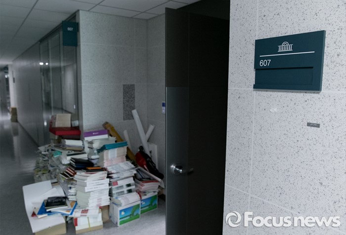 (서울=포커스뉴스) 20대 국회 개원식을 닷새 앞둔 25일 오후 서울 여의도 국회 의원회관의 의원실 앞에 정리된 짐들이 쌓여 있다.