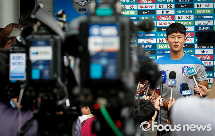 (파주=포커스뉴스) 이승우(18, 바르셀로나 후베닐A)가 25일 오후 경기도 파주 NFC에서 진행된 U-18(18세 이하) 축구대표팀 소집 훈련에 앞서 취재진의 질문에 답하고 있다.