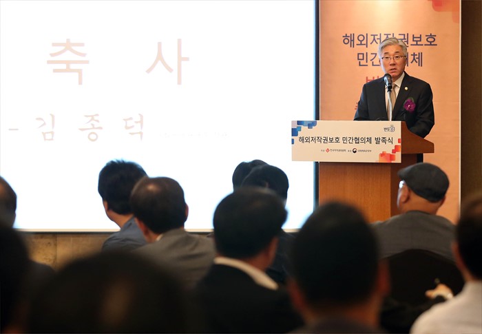 | △ 해외저작권 보호 민간협의체 발족식 축사하는 김종덕 장관 |