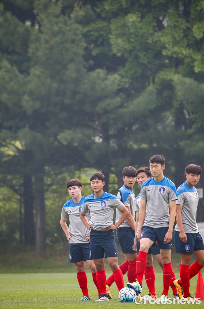 (파주=포커스뉴스) 이승우(18, 바르셀로나 후베닐A)가 25일 오후 경기도 파주 NFC에서 잉글랜드 U18(18세 이하) 대표팀과의 친선전을 앞두고 축구대표팀 선수들과 소집 훈련에 임하고 있다.