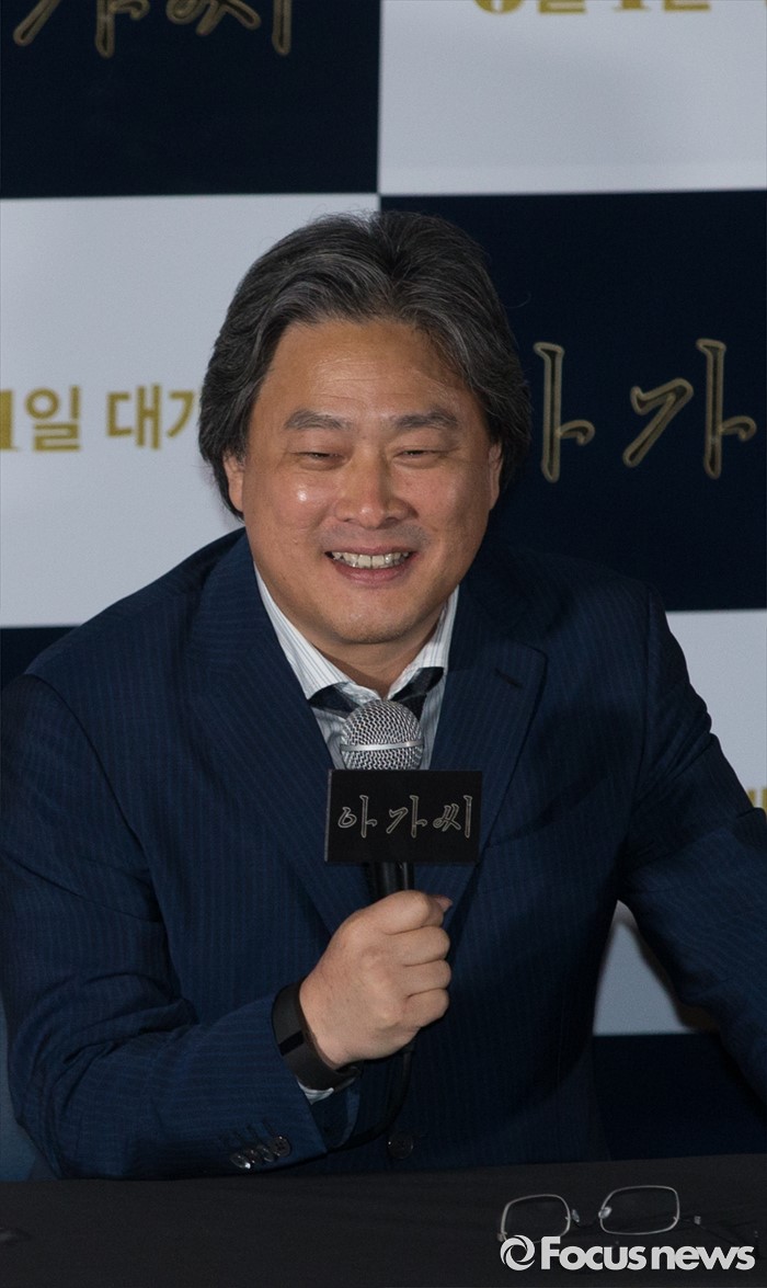 (서울=포커스뉴스) 25일 오후 서울 성동구 왕십리 CGV에서 열린 영화 '아가씨' 언론시사회에 참석한 박찬욱 감독이 인사말을 하고 있다.