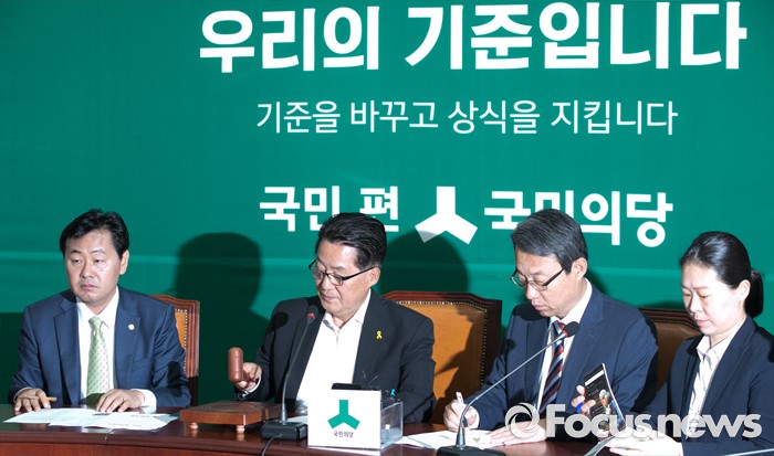 (서울=포커스뉴스) 26일 오전 서울 여의도 국회에서 열린 국민의당 원내정책회의에 참석한 박지원(왼쪽 두번째) 원내대표가 개의 선언을 하고 있다.