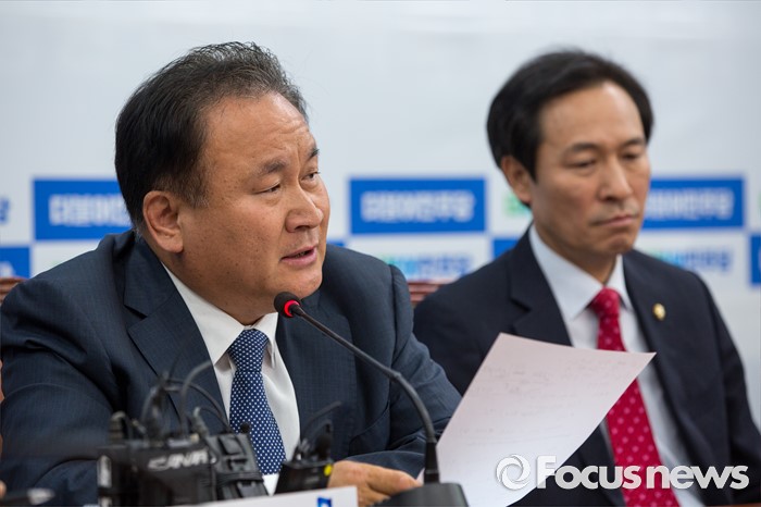 (서울=포커스뉴스) 이상민(왼쪽) 더불어민주당 청년일자리TF 위원장이 26일 오전 서울 여의도 국회에서 열린 '청년일자리 TF회의'에 참석해 발언을 하고 있다.