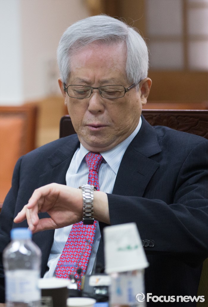 (서울=포커스뉴스) 송위섭 노사정위원회 노동시장구조개선특위 위원장이 26일 오전 서울 종로구 정부서울청사 내 노사정 대회의실에서 열린 노동시장구조개선특별위원회 제26차 전체회의에 참석해 시계를 보고 있다.