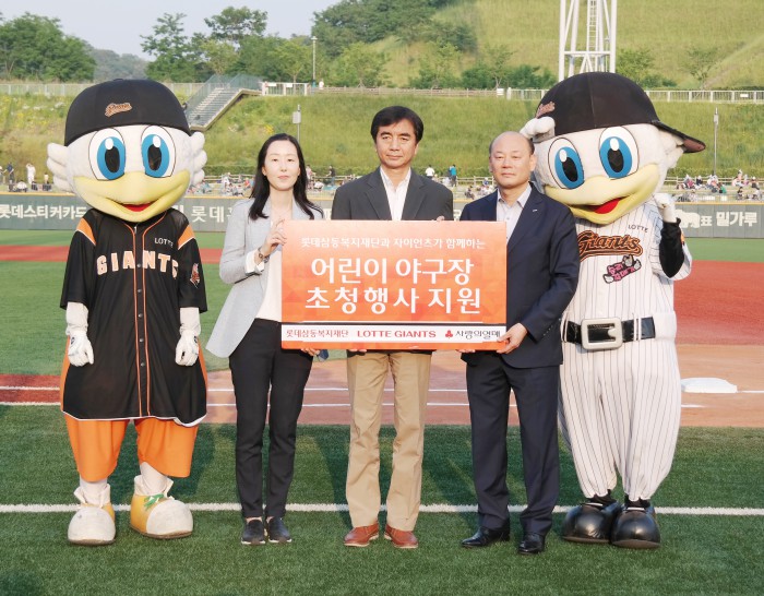 롯데는 25일 울산 문수구장에서 열린 LG와의 홈경기에 앞서 삼동복지재단, 사회복지공동모금회 울산지부 등과 구장투어 지원 전달식을 열었다. 롯데 구단 이창원 대표이사, 삼동복지재단 이정욱 전무, 사회복지공동모금회 울산지부 임해은 배분팀장이 자리했다.