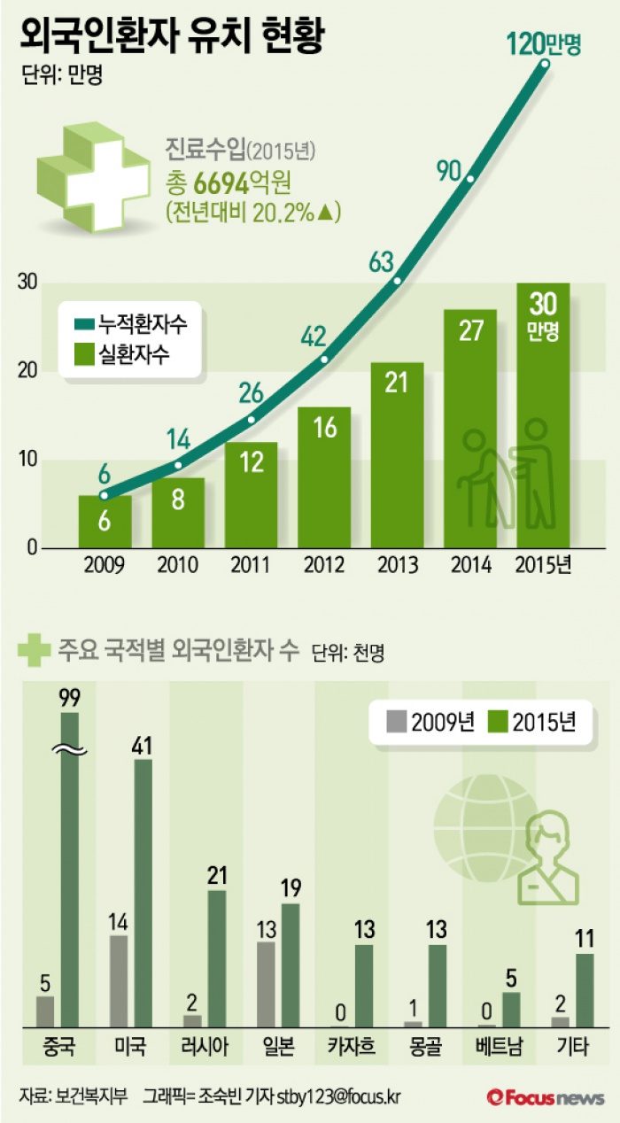 (서울=포커스뉴스) 26일 보건복지부(장관 정진엽)는 우리나라를 방문한 외국인환자가 2014년 26만7000명에서 2015년 29만7000명으로 11% 증가했다고 밝혔다.
