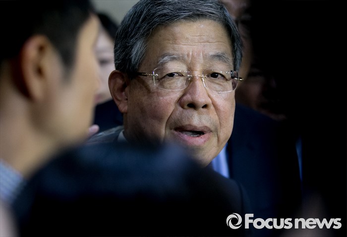 (서울=포커스뉴스) 새누리당 혁신비대위원장에 내정된 김희옥 전 동국대 총장이 26일 오후 서울 여의도 국회 정론관에서 기자회견을 마친 뒤 취재진 질문에 답하고 있다.
