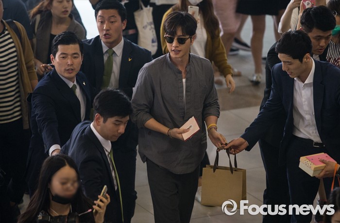 (서울=포커스뉴스) 27일 오전 서울 강서구 김포공항에서 배우 박해진이 비정상거리 녹화, 중국 단독 팬미팅의 일정을 위해 출국하고 있다.