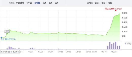 시가총액도 두 달 전 1890억원을 기록했지만, 현재 4020억원으로 늘어나면서 코스닥 99위 자리에 올랐다.