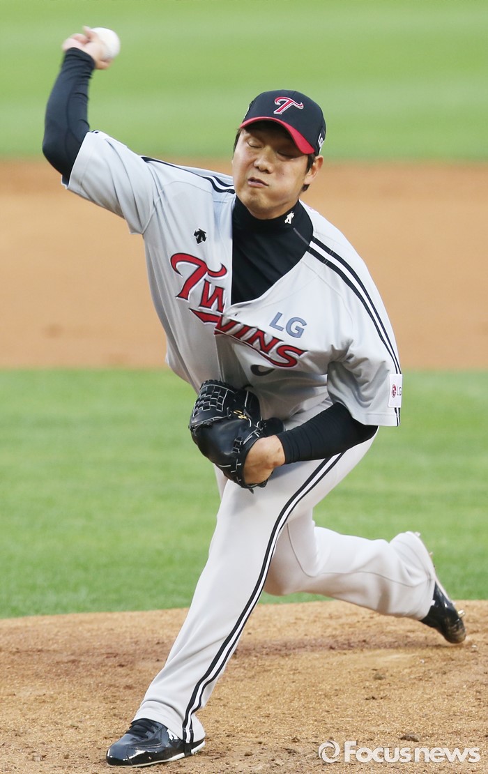 (서울=포커스뉴스) 27일 서울 잠실구장에서 열린 2016프로야구 LG-두산 경기에서 1회말 LG 선발투수 류제국이 투구하고 있다.