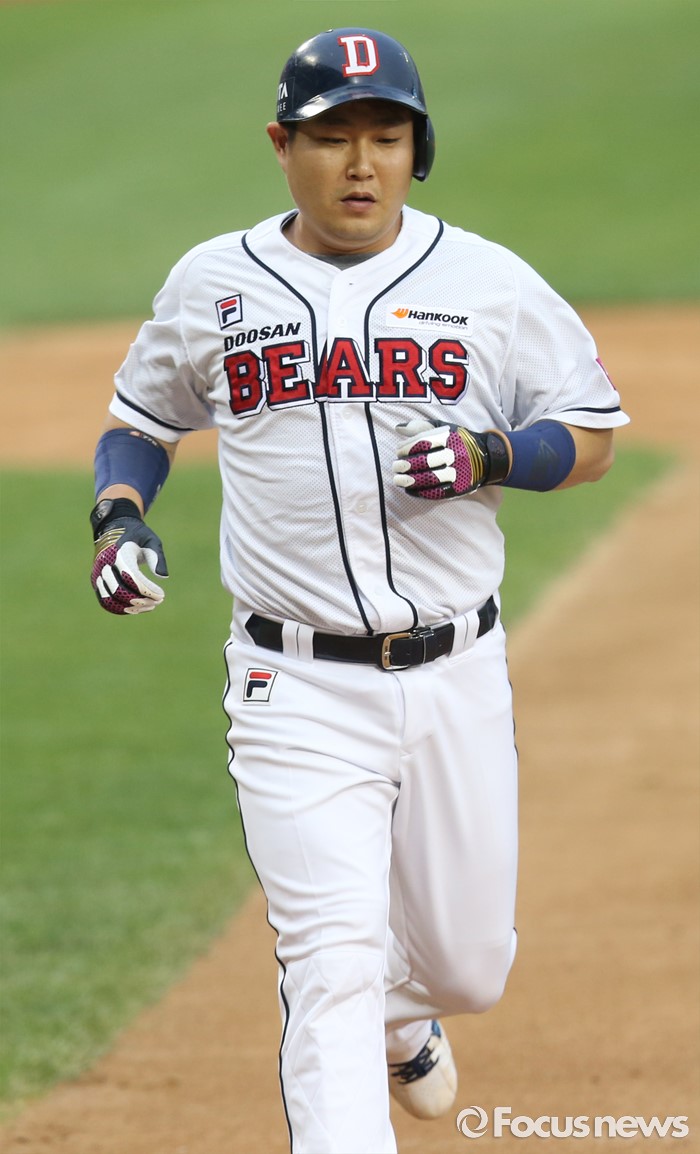(서울=포커스뉴스) 27일 서울 잠실구장에서 열린 2016프로야구 LG-두산 경기 1회말 2사 2루에서 두산 에반스의 중전 안타때 2루주자 양의지가 홈인하고 있다.