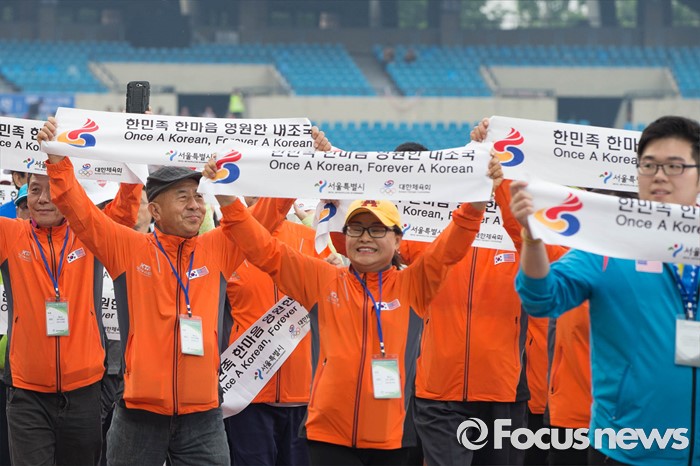 (서울=포커스뉴스) 2016 전국생활체육대축전 개막식이 열린 27일 오후 서울 송파구 잠실 올림픽주경기장에서 재외동포 선수단이 입장하고 있다.