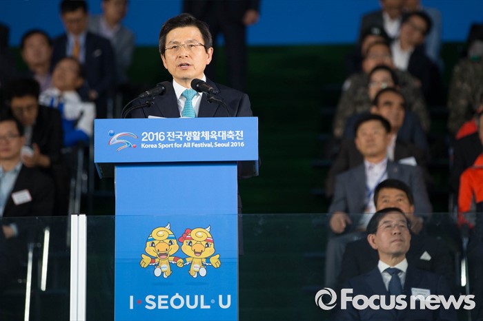 (서울=포커스뉴스) 2016 전국생활체육대축전 개막식이 열린 27일 오후 서울 송파구 잠실 올림픽주경기장에서 황교안 국무총리가 인사말을 하고 있다.