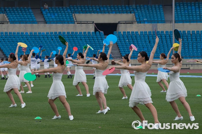 (서울=포커스뉴스) 2016 전국생활체육대축전 개막식이 열린 27일 오후 서울 송파구 잠실 올림픽주경기장에서 응원단들이 열띤 응원을 펼치고 있다.