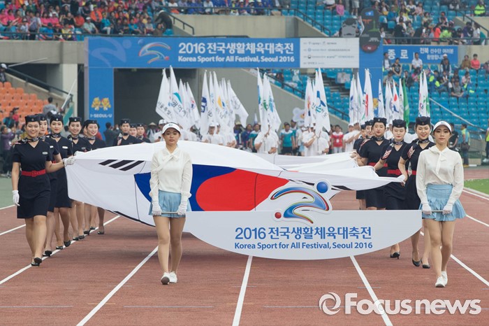 (서울=포커스뉴스) 2016 전국생활체육대축전 개막식이 열린 27일 오후 서울 송파구 잠실 올림픽주경기장에서 개막 축하 퍼레이드가 진행되고 있다.