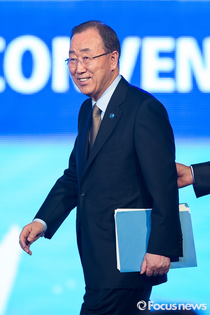 (서울=포커스뉴스) 반기문 유엔 사무총장이 29일 오전 경기 고양시 킨텍스 제1전시장에서 열린 2016 국제로타리 세계대회에 참석해 기조연설을 마친 후 단상에서 내려오고 있다.