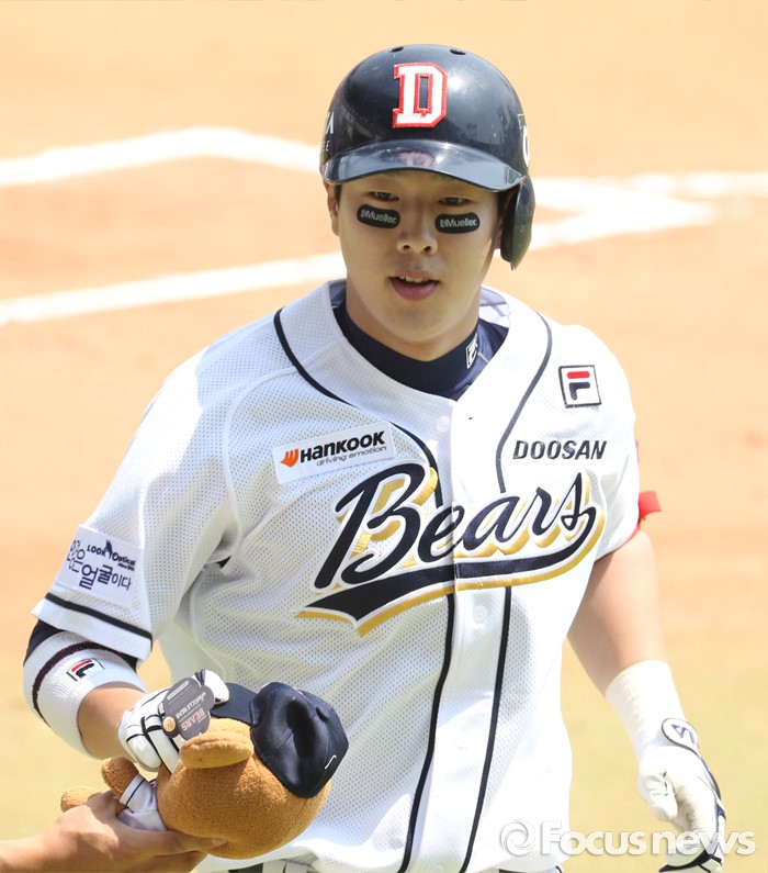 (서울=포커스뉴스) 29일 서울 잠실구장에서 열린 2016프로야구 LG-두산 경기 1회말 두산 선두타자 박건우가 좌월 솔로 홈런을 치고 홈인하고 있다.
