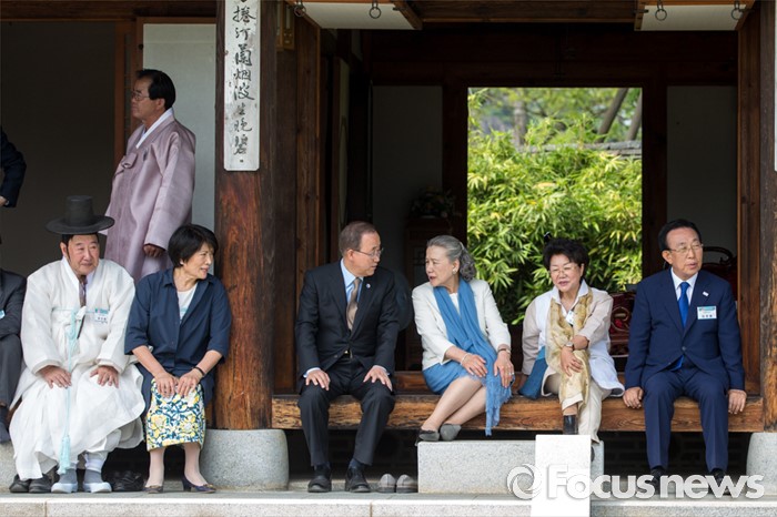 (안동=포커스뉴스) 반기문 UN 사무총장이 29일 오후 경북 안동시 하회마을 방문해 유순택 여사와 대화를 나누고 있다.