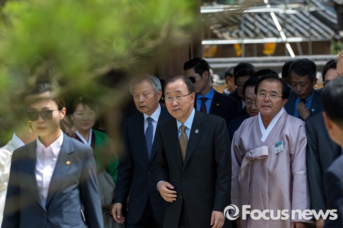 (안동=포커스뉴스) 반기문 UN 사무총장이 29일 오후 경북 안동시 하회마을을 둘러보고 있다.