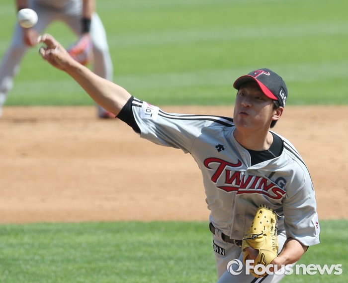 (서울=포커스뉴스) 29일 서울 잠실구장에서 열린 2016프로야구 LG-두산 경기에서 LG 투수 최동환이 2회말에 투구하고 있다.