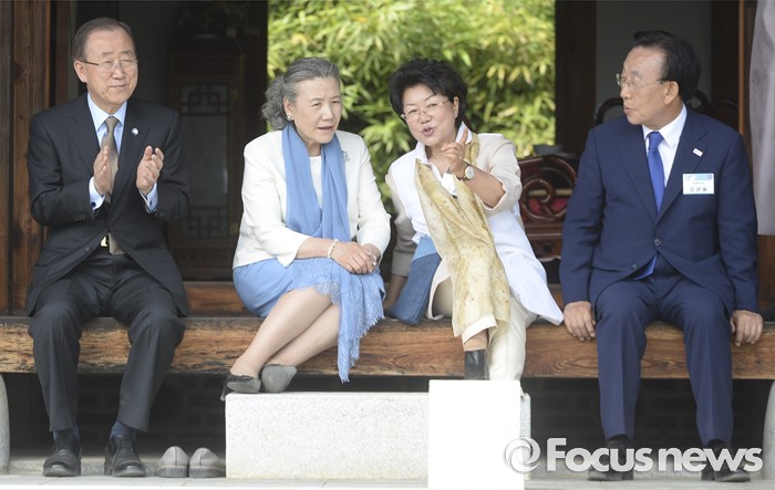 왼쪽부터 반기문 유엔 사무총장, 유순택 여사, 김춘자 여사, 김관용 경북도지사.