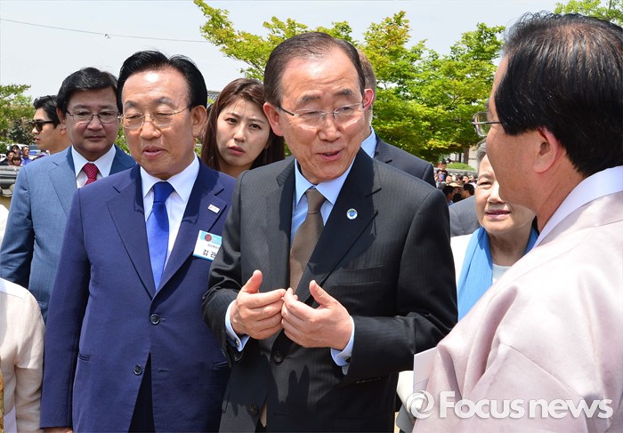 △ 관계자들과 대화하는 반기문 유엔 사무총장